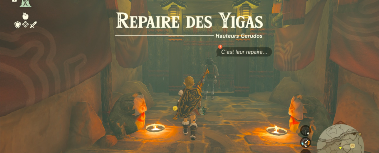 Le Repaire des Yigas est l’un des donjons les plus atypiques de Breath of the Wild et représente un véritable défi d’infiltration. Contrairement aux sanctuaires classiques où vous pouvez foncer tête baissée, ici, la discrétion est votre meilleure alliée. Ce repaire se trouve dans les Highlands de Gerudo, caché derrière une façade trompeuse qui ne laisse rien présager de la complexité qui vous attend à l’intérieur. Préparez-vous à découvrir un labyrinthe souterrain rempli de gardes Yigas ultra vigilants, de salles piégées et de passages secrets qui vous donneront du fil à retordre.